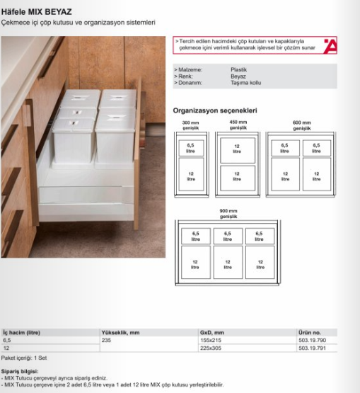 HÄFELE MIX Çekmece İçi Çöp Kutusu 12 Lt Beyaz